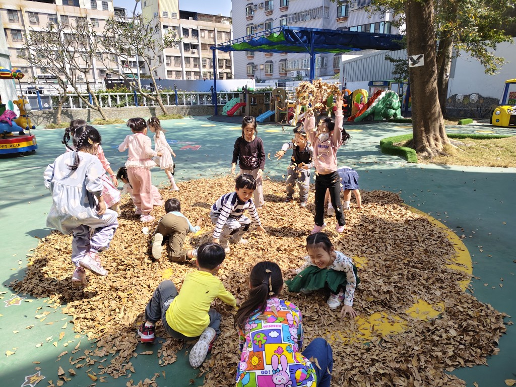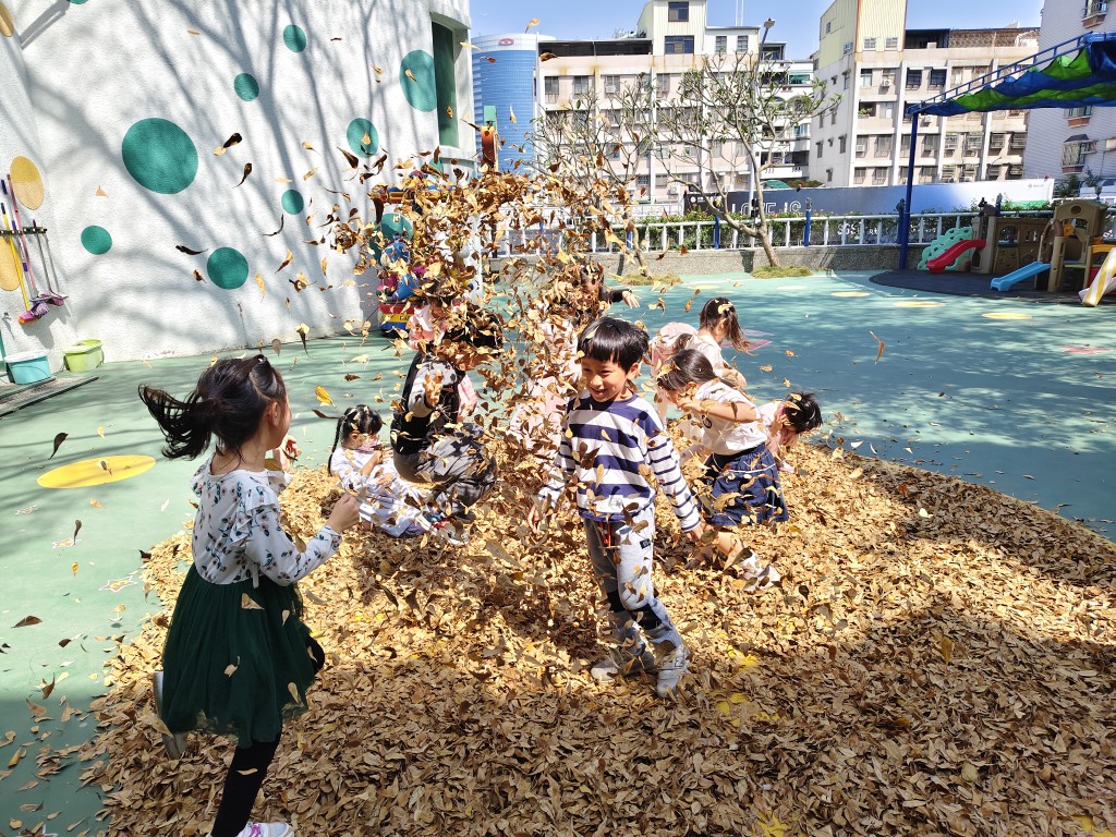 踩落葉、聽聽落葉的聲音,躺在落葉上....玩落葉嘍!
