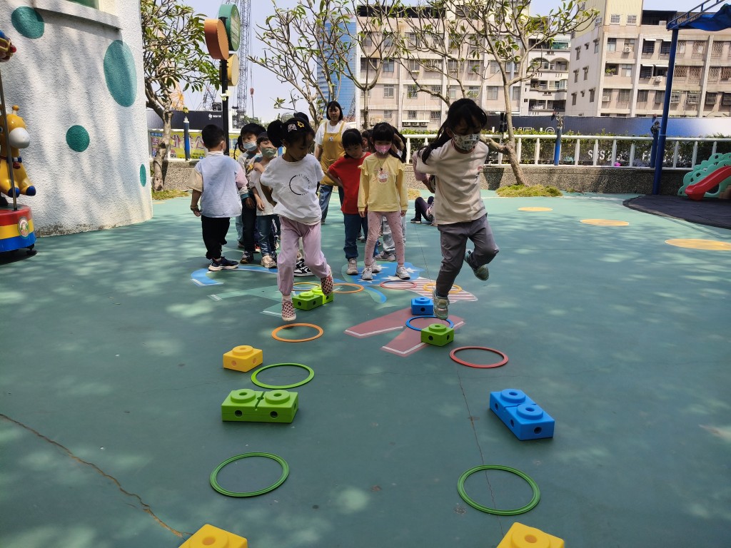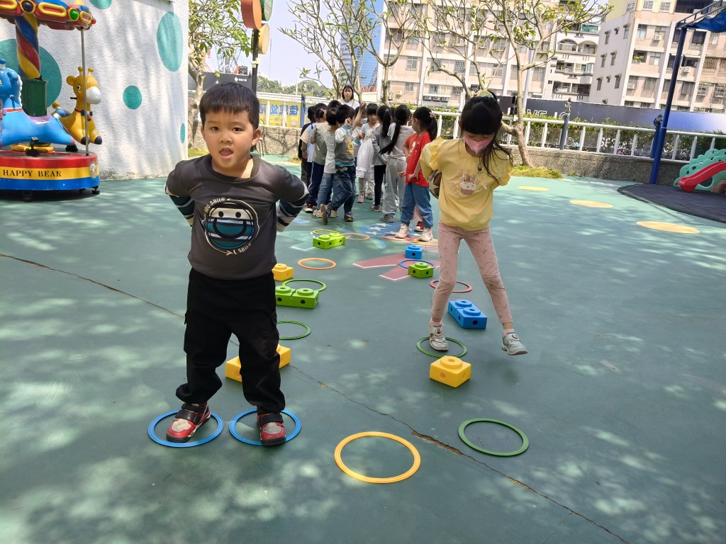 相簿名稱: 長頸鹿班🦒彩磚跨越挑戰賽(單、雙腳跳練習)